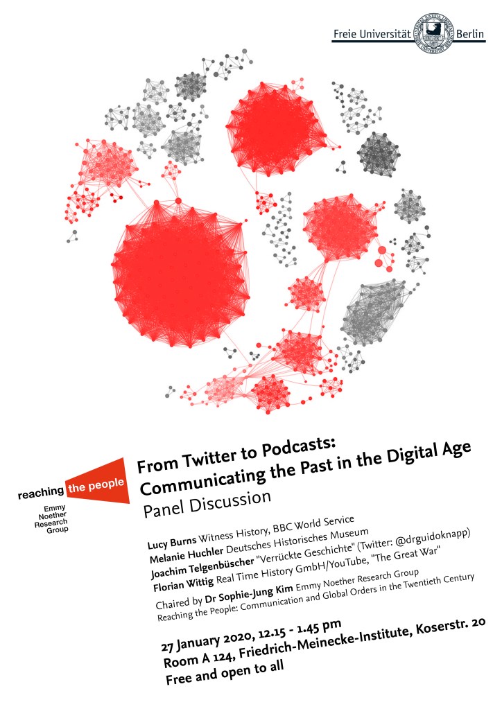 Speaking Events Globalizing Publics: A New Direction for Global Histories of Communication October 2024University of ViennaVienna, Austria From Twitter to Podcast: Communicating the Past in the Digital Age January 2020 Freie Universität BerlinBerlin, Germany Cambridge Festival of Ideas Extreme Colonial Histories, Memory, and IdentityOctober 2018University of CambridgeCambridge, U.K. Global and Transnational Research Group Forum What is Global Intellectual History?November 2016University of EdinburghEdinburgh, U.K. Interested in having me speak? Contact Me Share this: Click to share on X (Opens in new window) X Click to share on Facebook (Opens in new window) Facebook Like Loading...